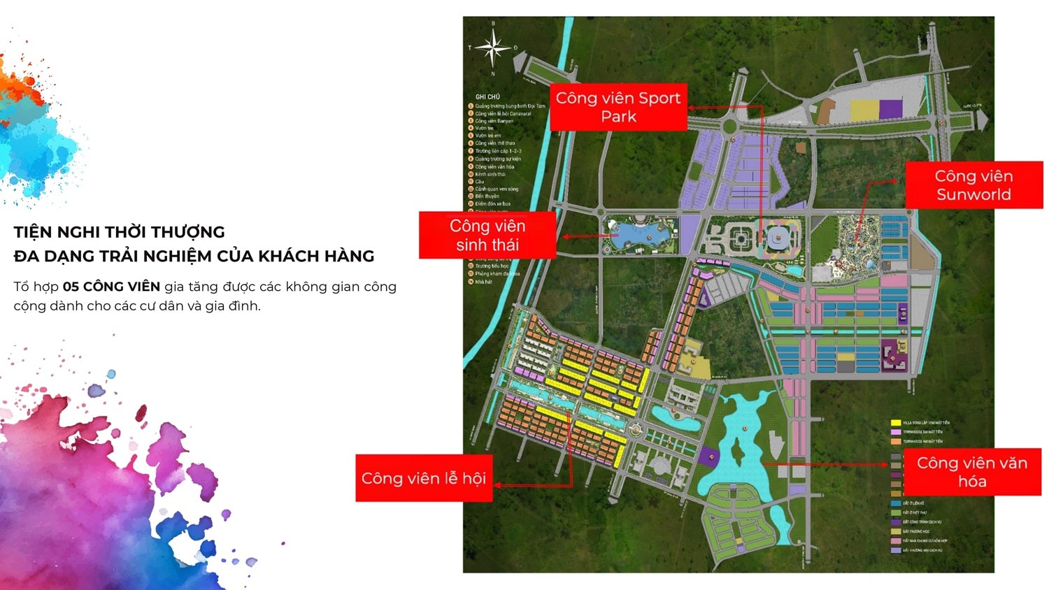- Vị trí: Khu quảng trường, công viên lễ hội, mặt đường 13,5m, 27m, 30m